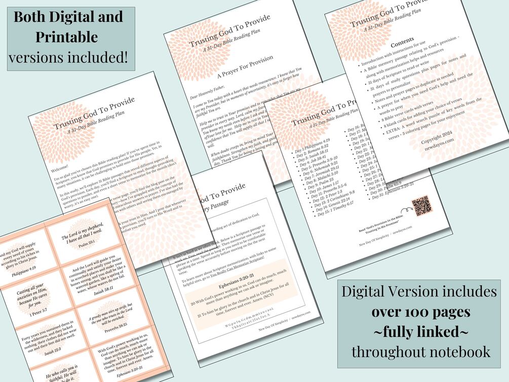 Bible Reading Plan on God’s Provision with Bible Study Journal - Trusting God To Provide - digital + printable versions + extras